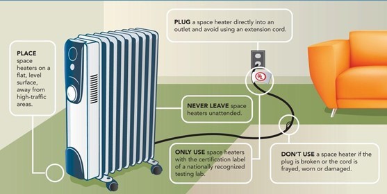 - Proper placement of space heaters is critical. Heaters must be kept at least three feet away from anything that can burn, including papers, clothing, and rugs.