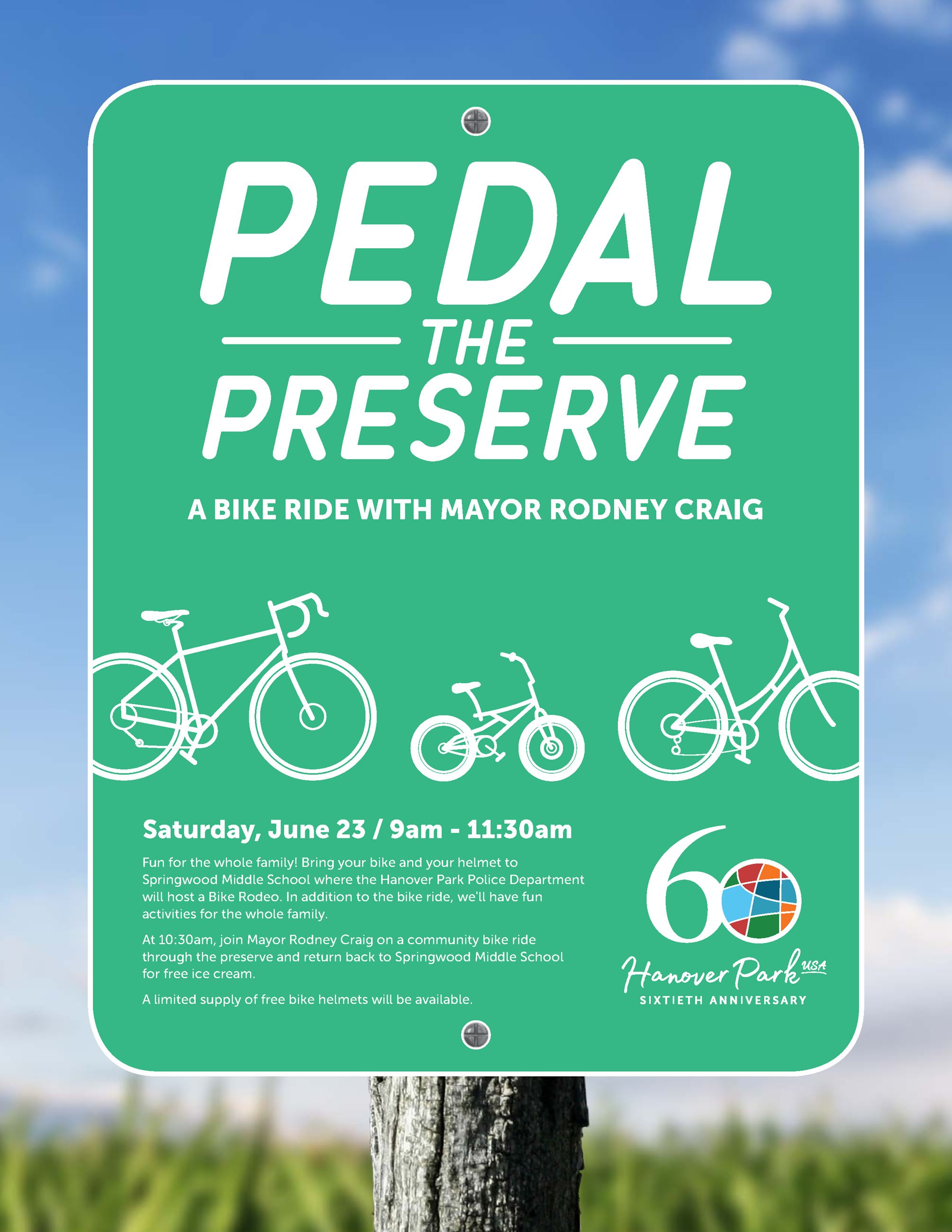 On June 23rd, the police department will host a Bike Rodeo with lots of activities and fun activities followed by a bike ride through the forest preserve lead by Mayor Rod Craig. After the ride, enjoy some FREE ice cream! Limited number of bike helmets will be available for attendees.